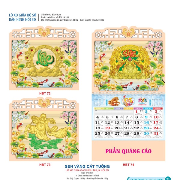 Lịch lò xo giữa bộ số – Dán hình nổi 3D – Sen Vàng Cát Tường với hình ảnh sen vàng thanh khiết, biểu tượng phú quý và an lành, mang đến may mắn, thịnh vượng cho năm mới.